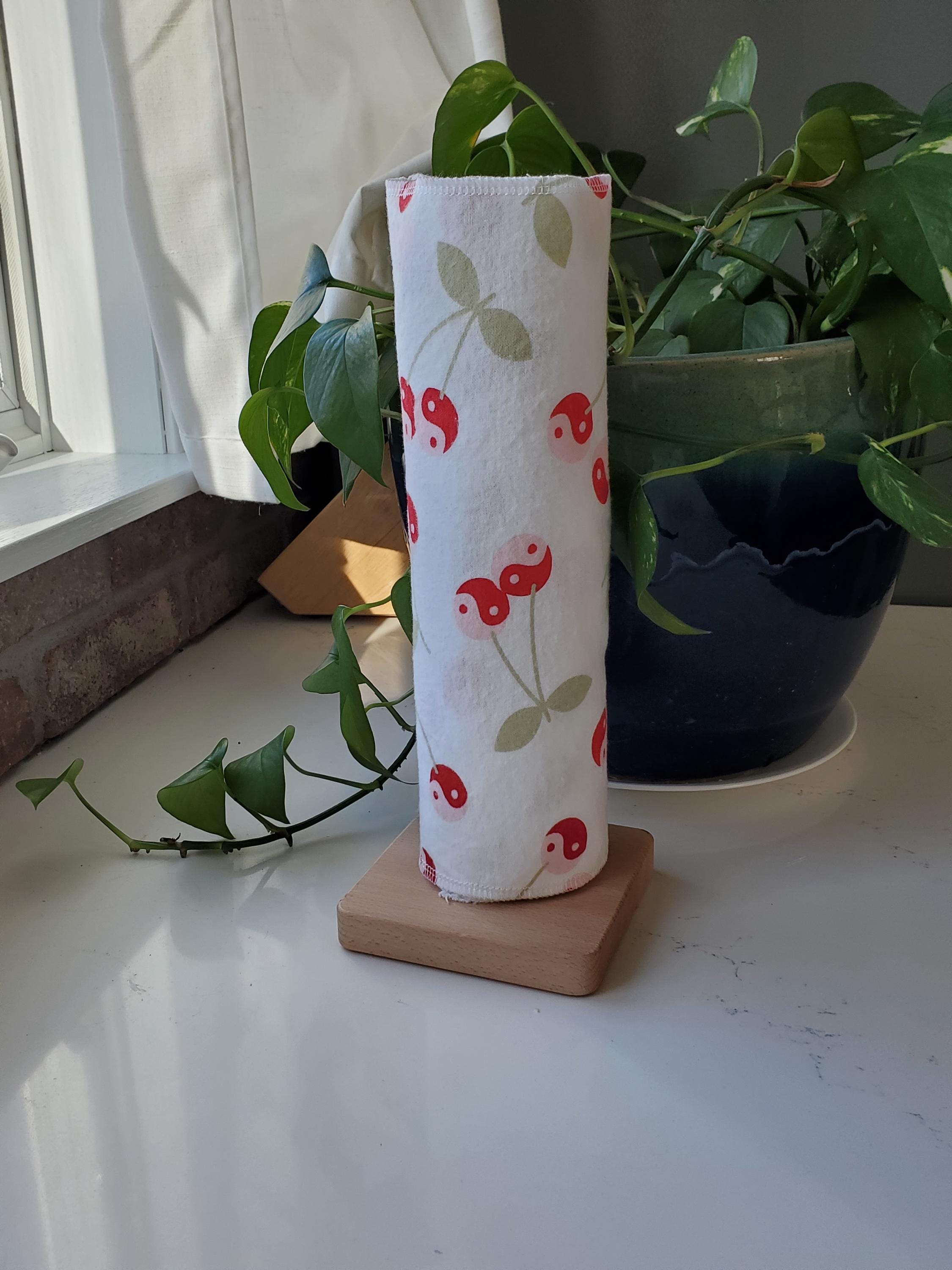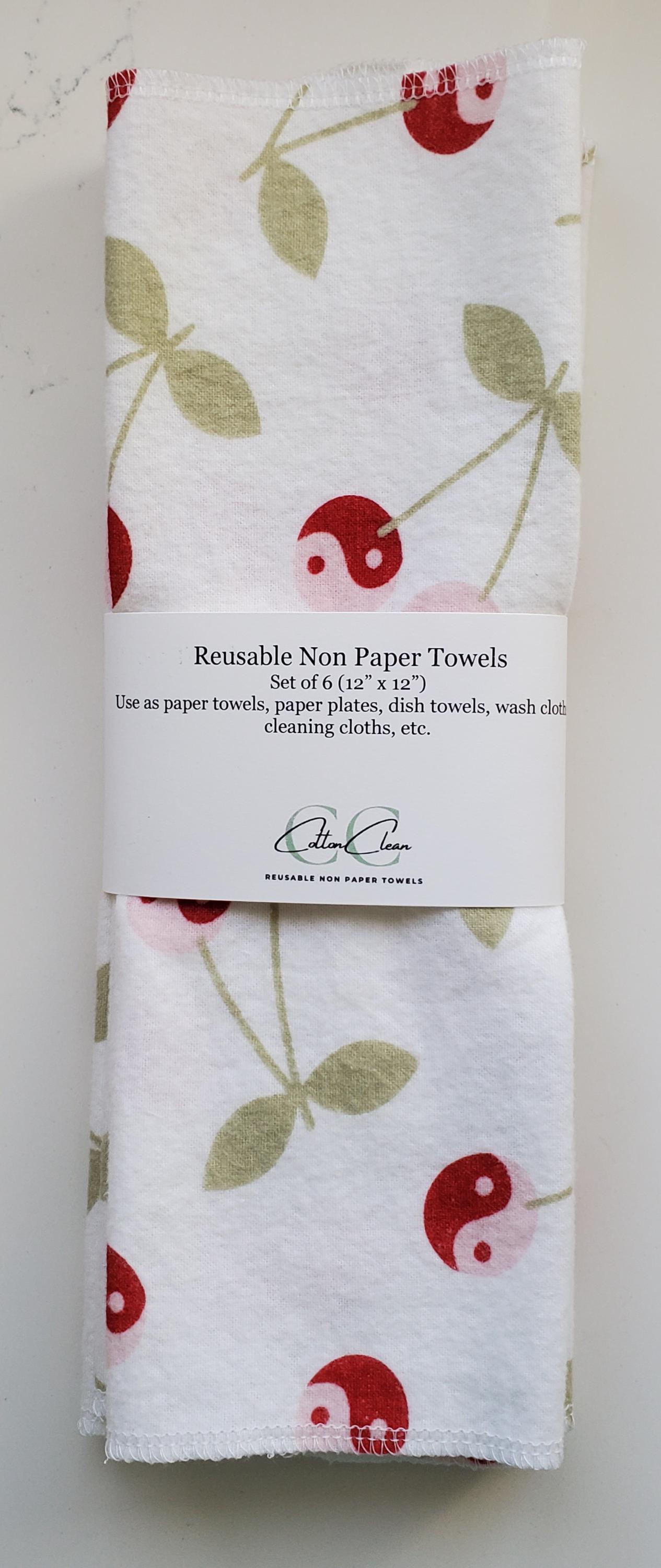 Reusable Non-Paper Towel: Cherry Flannel Package of Six (6) 12x12